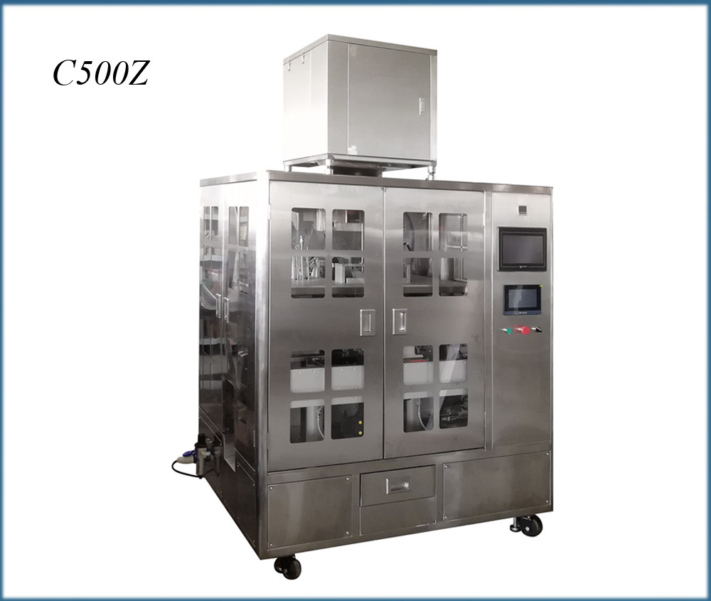 Automatic vacuum tea bag packing machine, with vacuum function / Nitrogen gas filling, to pack big size premade pouch, 1KG tea, is suitable for many kinds of tea, such as short strip, needle shape, flat shape, sheet shape, coffee bean, coffee powder, etc., tea variety packing (rock tea, white tea, black tea, green tea, Pu'er tea, flower tea, etc.)