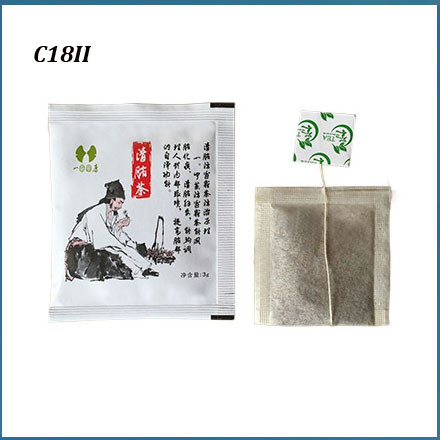 C18II inner and outer tea bag packing machine is suitable for inner bag and outer envelope, and for packing small granular products such as tea leaf, medicinal tea and health care tea.